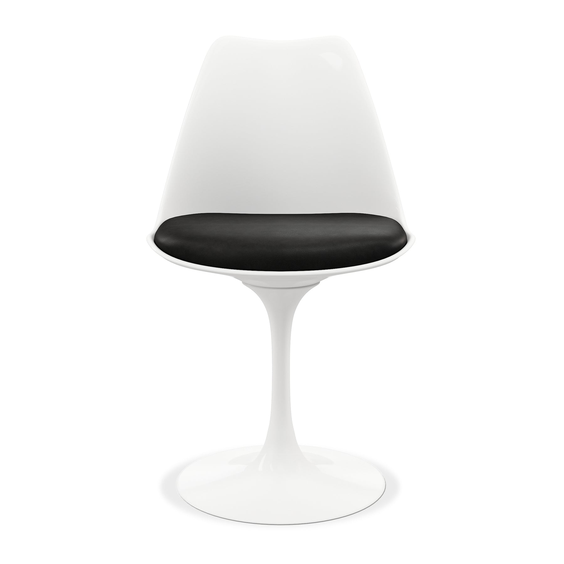 It’s matched with iconic Tulip chairs featuring molded ABS plastic seats, smooth swivel bases, and removable PU leather cushions that offer comfortable, low-maintenance seating. The clean lines and seamless shapes give the set a cohesive, timeless feel. Sized for up to four people, this dining set is ideal for space efficient homes, apartments, or open-concept spaces where style and practicality need to go hand in hand.
