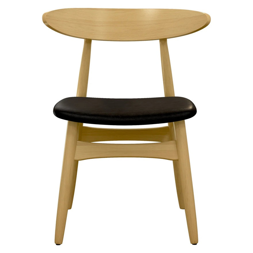 Paired with the Lulu Dining Chair blends a vintage European silhouette with modern simplicity, featuring soft curves, clean lines, and a solid wood frame in a natural finish that highlights the grain. The cushioned seat is upholstered in durable PU leather for everyday comfort and easy maintenance, making it perfect for both casual dining and more refined settings.