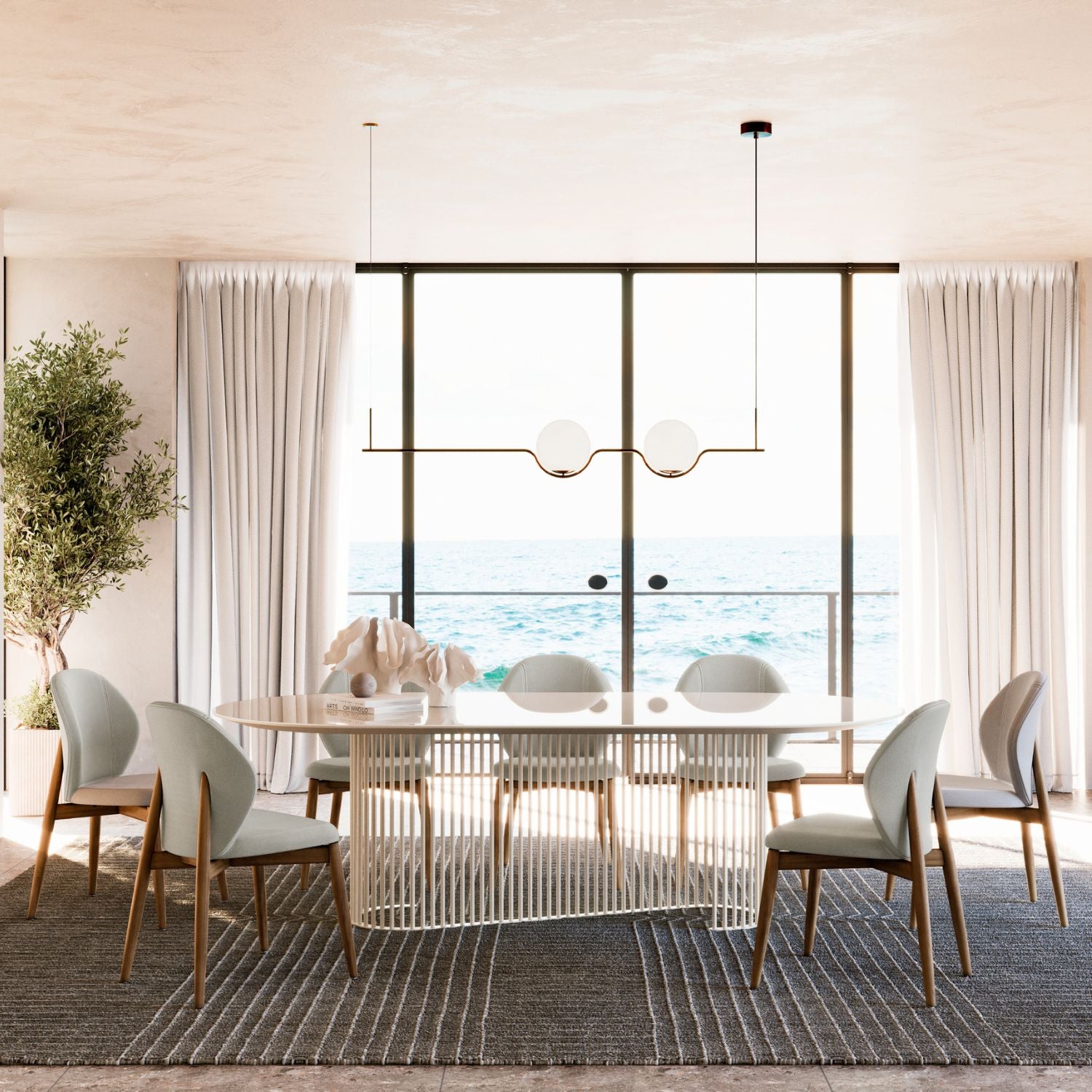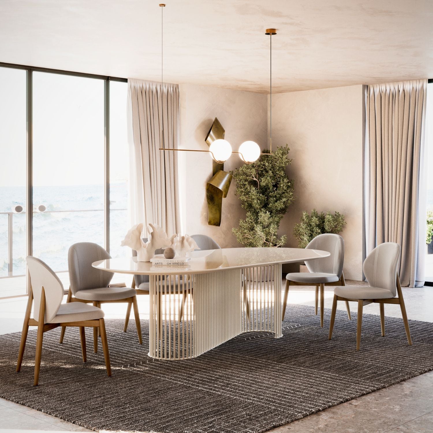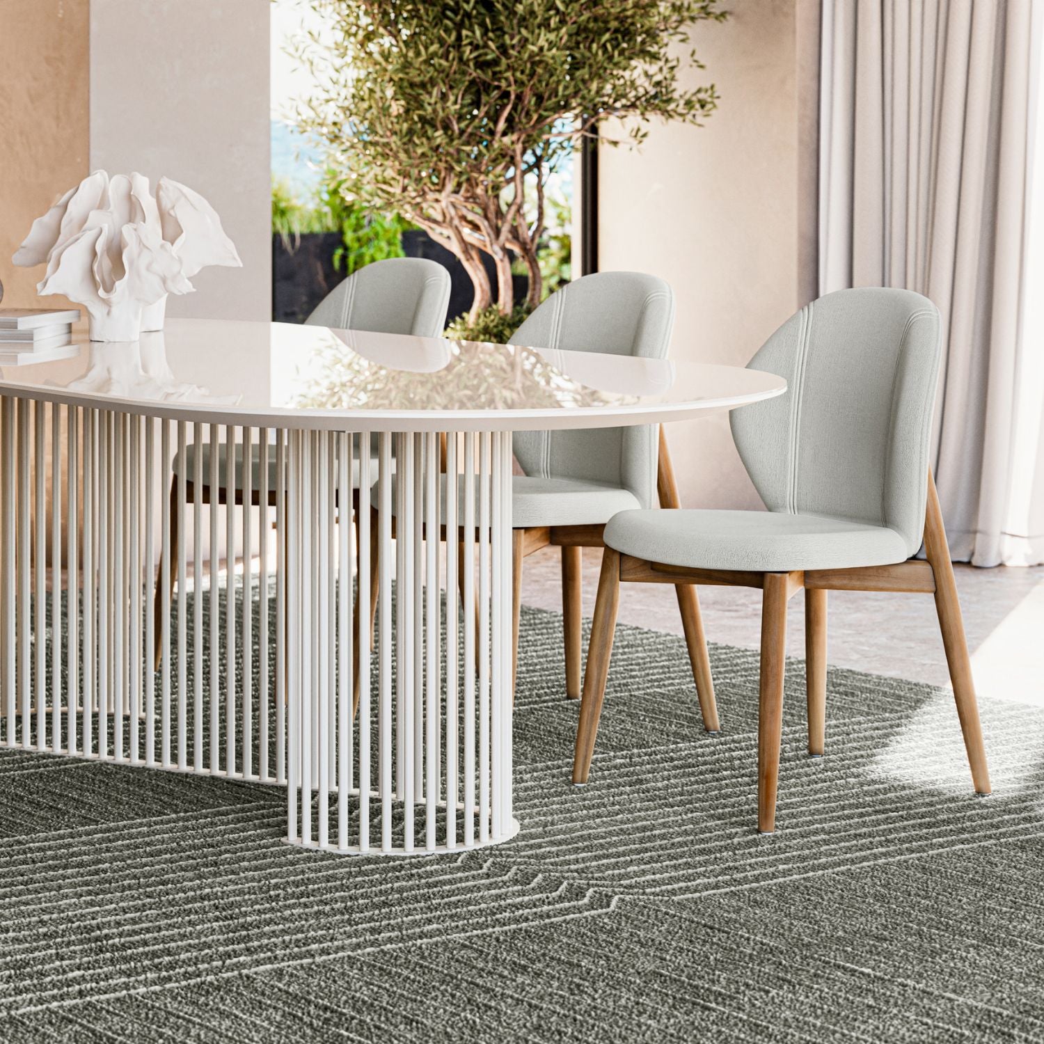 The Aston Dining Chair strikes a fine balance between sculptural form and everyday comfort. Its curved backrest is fully upholstered for a soft, supportive feel, while the open back detail and exposed wood legs bring warmth and character to the design.