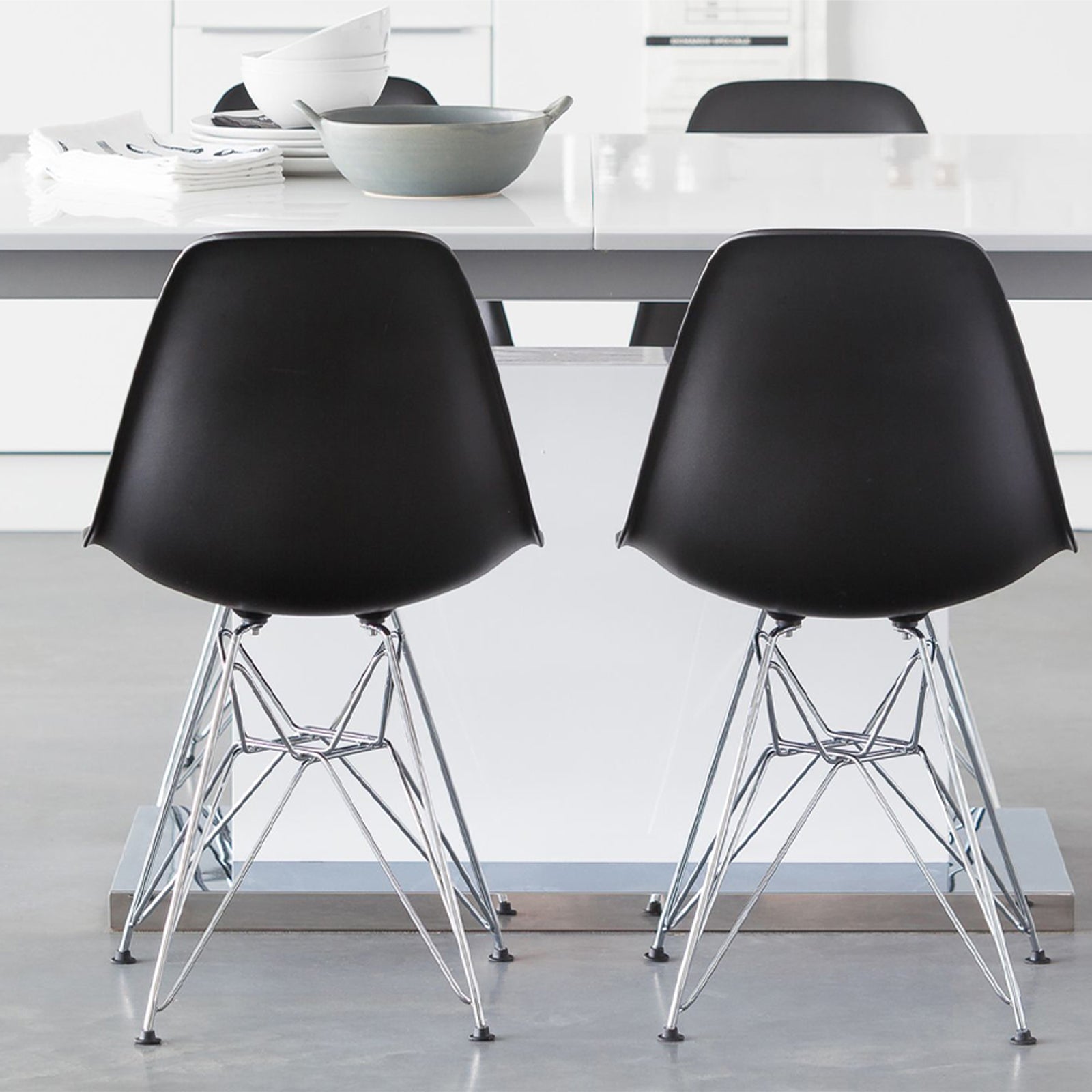 The smooth plastic seat is both impact- and scratch-resistant, making it ideal for busy homes, cafes, or workspaces. Non-marking floor protectors and a steel cross-brace beneath the legs provide added stability without sacrificing the chair’s clean profile. Whether used around a dining table, in an office, or as an accent chair, Eiffel Side Chair brings practical style into any space.
