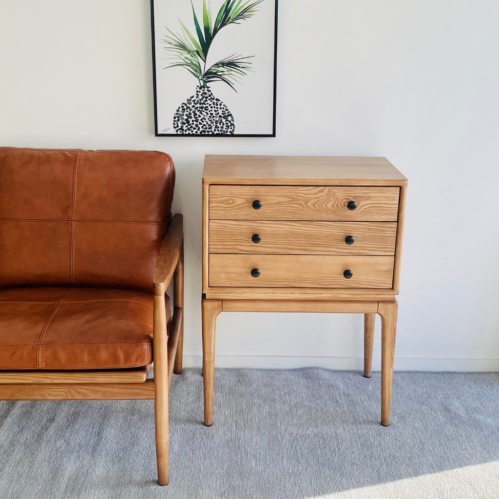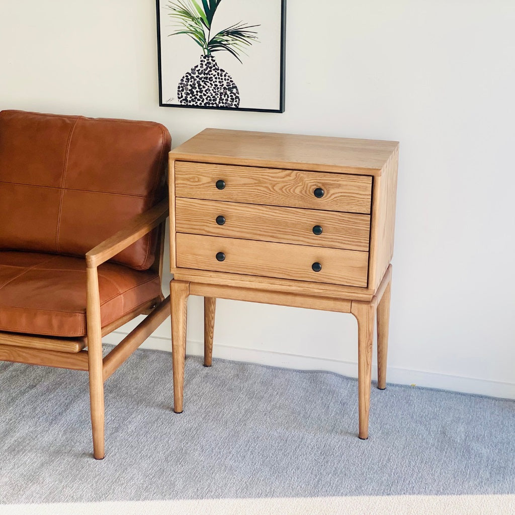 This chest feels solid the moment you touch it. Crafted from rich walnut-finished solid wood, it combines dependable storage with classic mid-century style. The three spacious drawers glide effortlessly on wooden runners, making it easy to tuck away everything from linens to everyday essentials. I love the gently rounded corners and tapered legs, they give it character without taking up visual space, so it works beautifully in both modern and traditional rooms.