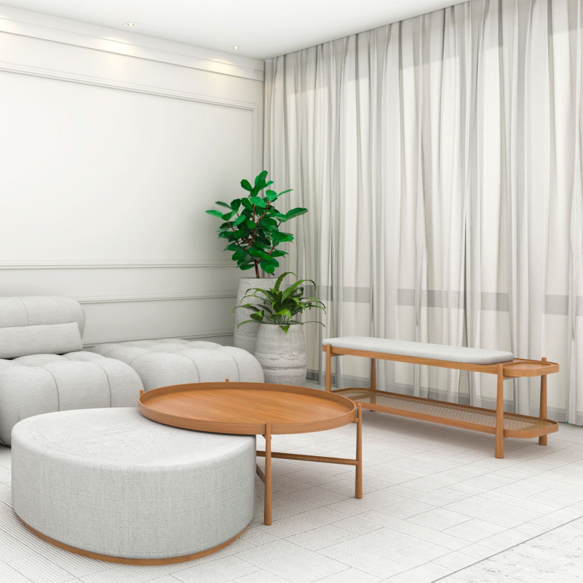 The lower tray adds a clever touch of style and storage, choose between laminated MDF or straw finish to match your space. Whether it’s at the foot of your bed, in an entryway, or as extra seating in your living area, Lorren combines refined craftsmanship with everyday versatility.