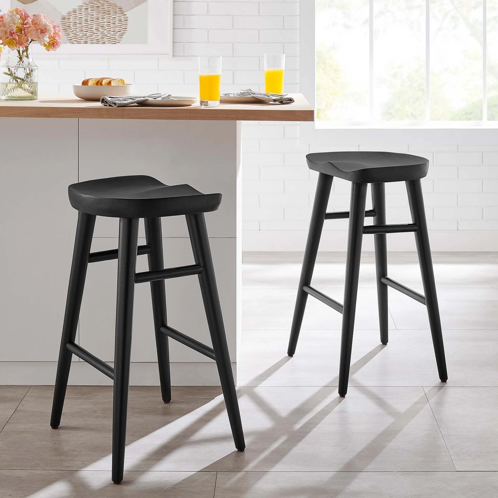 Crafted from solid mango wood for durability and a touch of rustic charm, these sleek counter stools are the perfect blend of minimalist design and contemporary style. The saddle seats offer comfort and a chic profile, making them ideal for any kitchen counter or bar setting. The splayed legs with stretchers add a sophisticated touch, while the adjustable foot glides ensure stability and protect your precious floors. Say goodbye to wobbly seating and hello to stylish functionality with Luca Counter Stools.