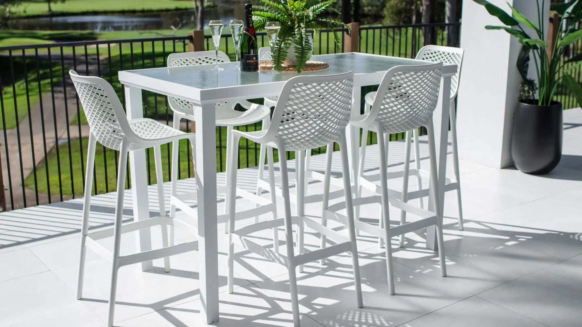 - This barstool molded from durable polypropylene, with a breathable mesh-style seat and backrest that provides ergonomic support while keeping the design lightweight and practical for everyday use, indoors or outdoors.