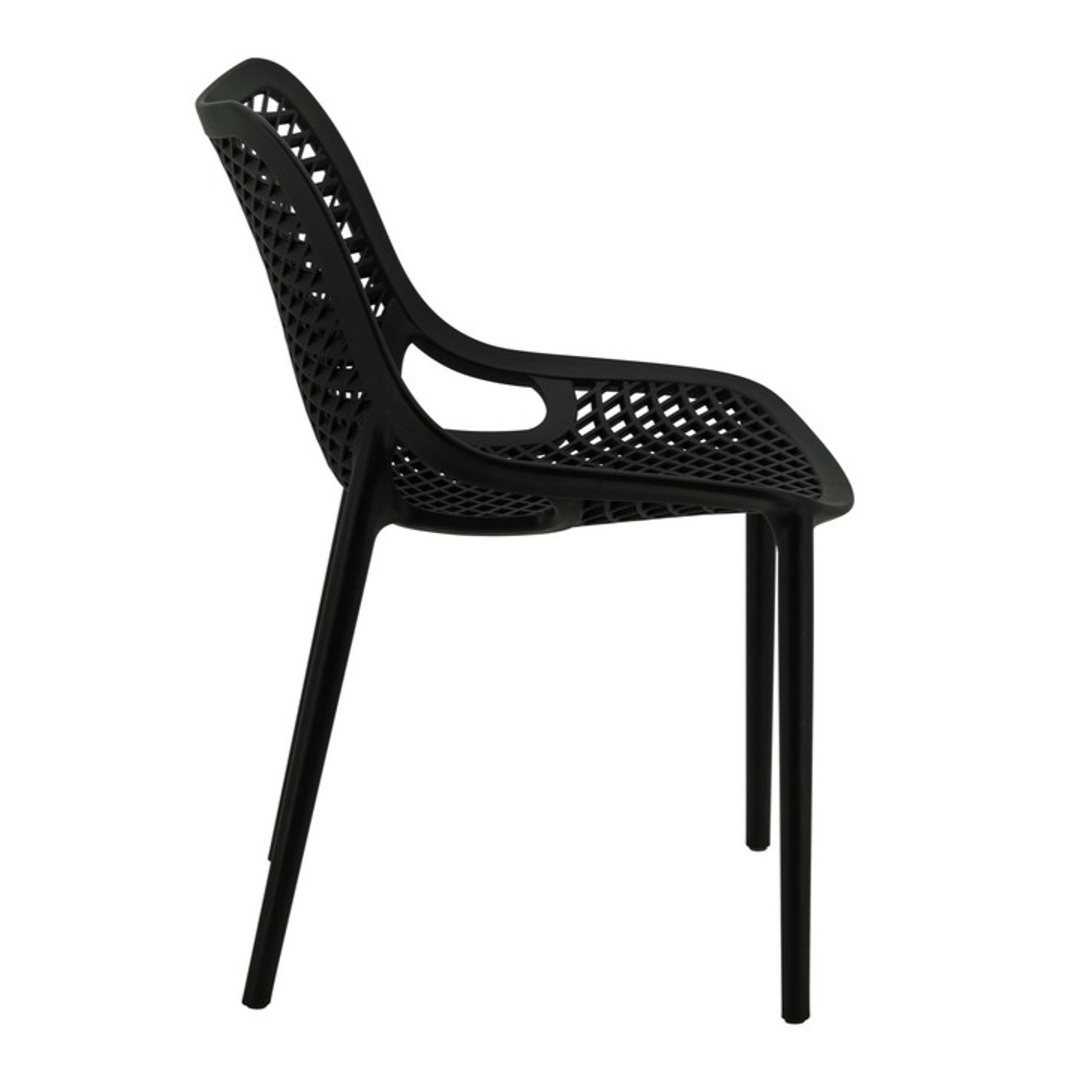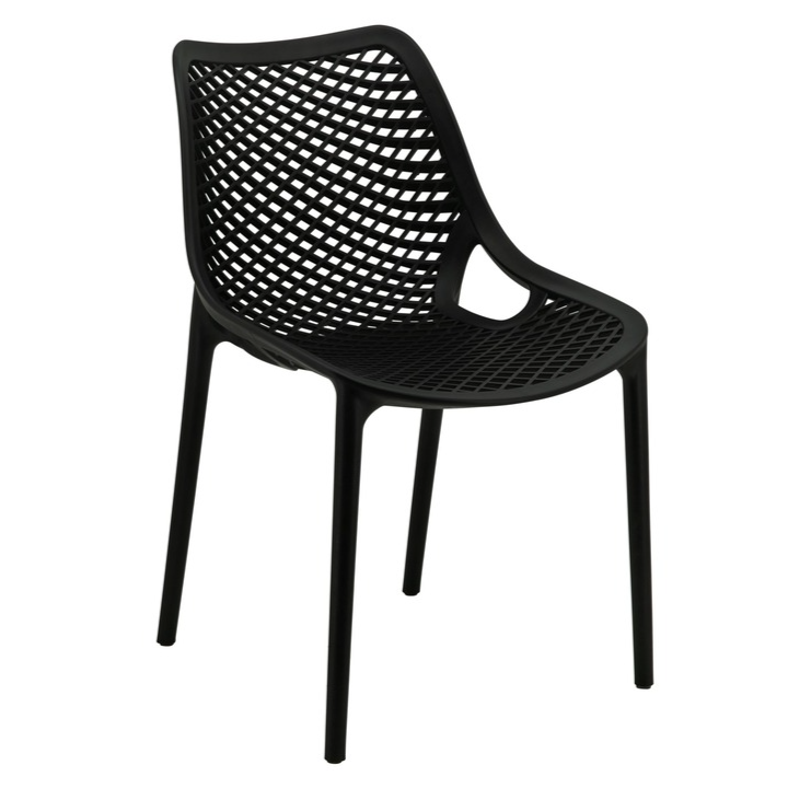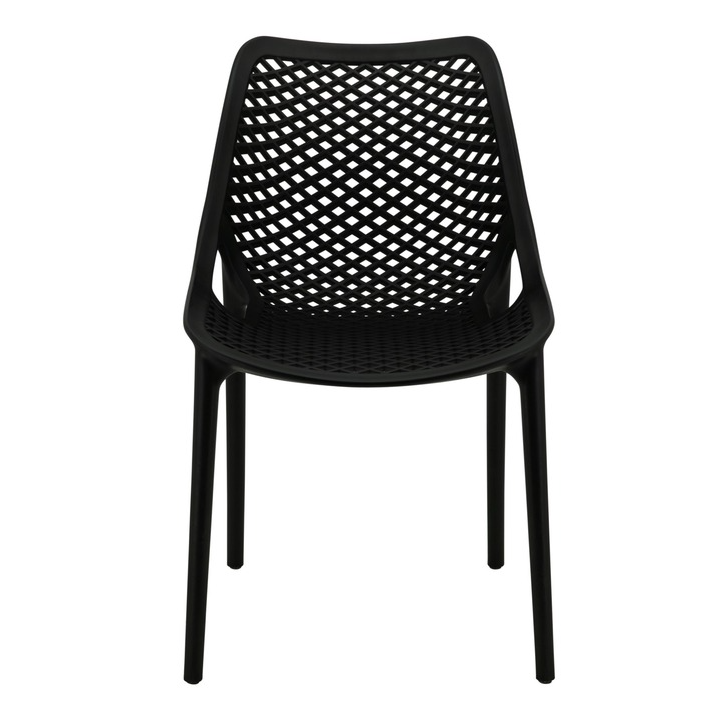 - This chair molded from durable polypropylene, with a breathable mesh-style seat and backrest that provides ergonomic support while keeping the design lightweight and practical for everyday use, indoors or outdoors.
