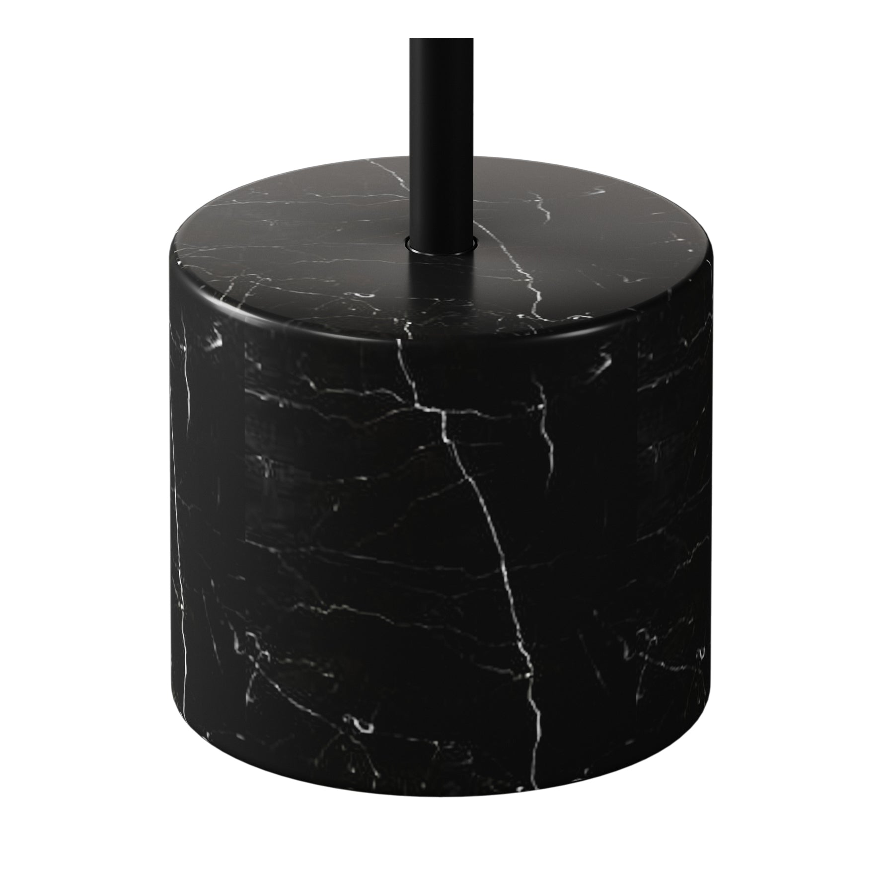 - The Poke Coffee Table features a solid marble base paired with a powder-coated metal column that supports a smooth, round tabletop.