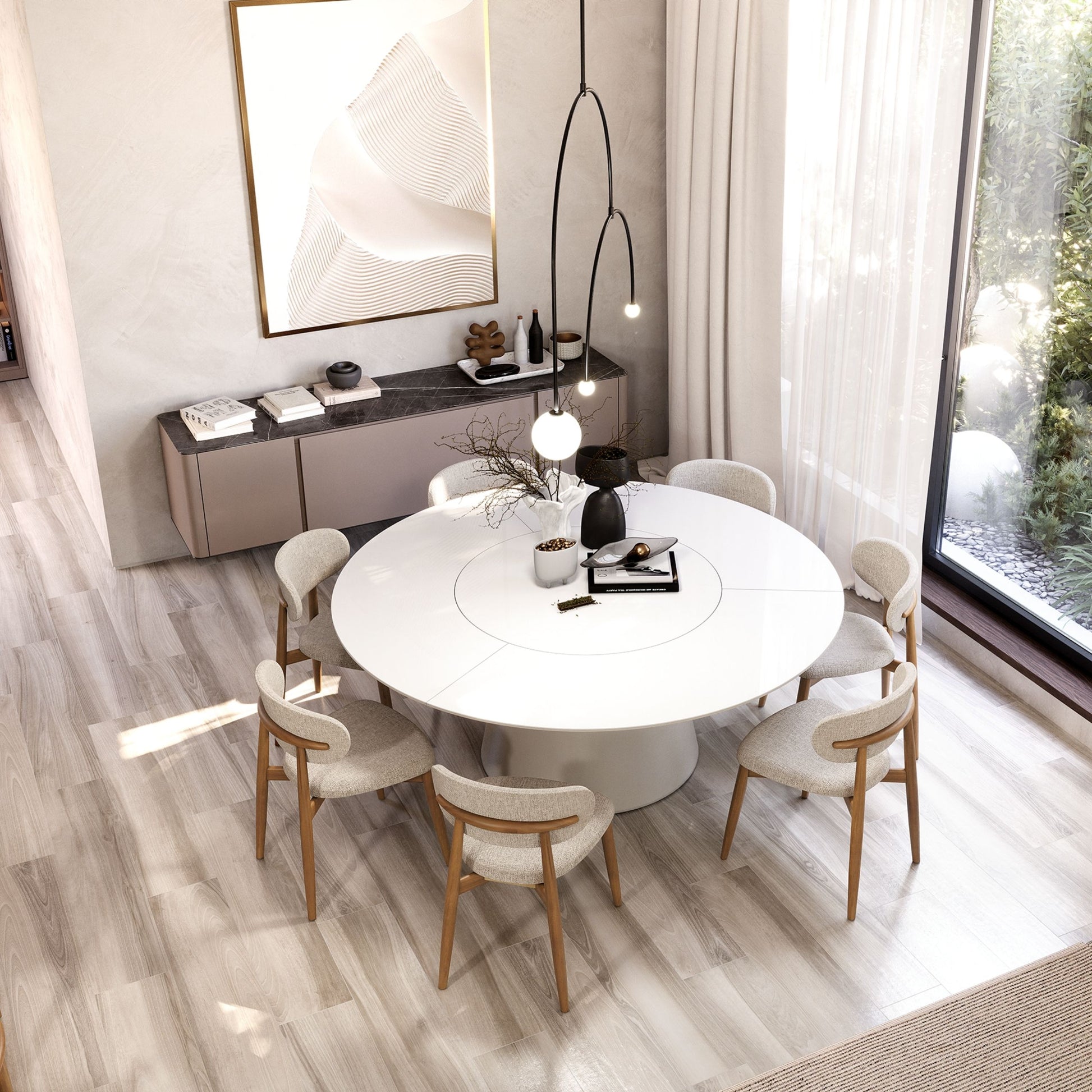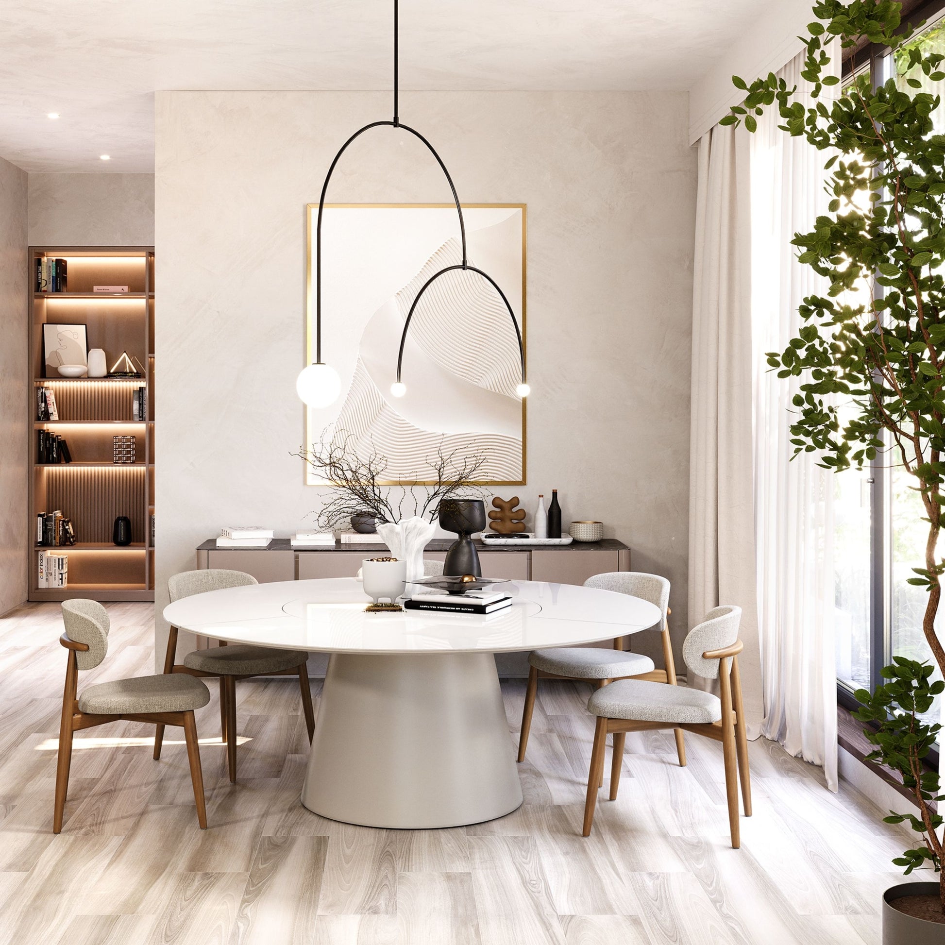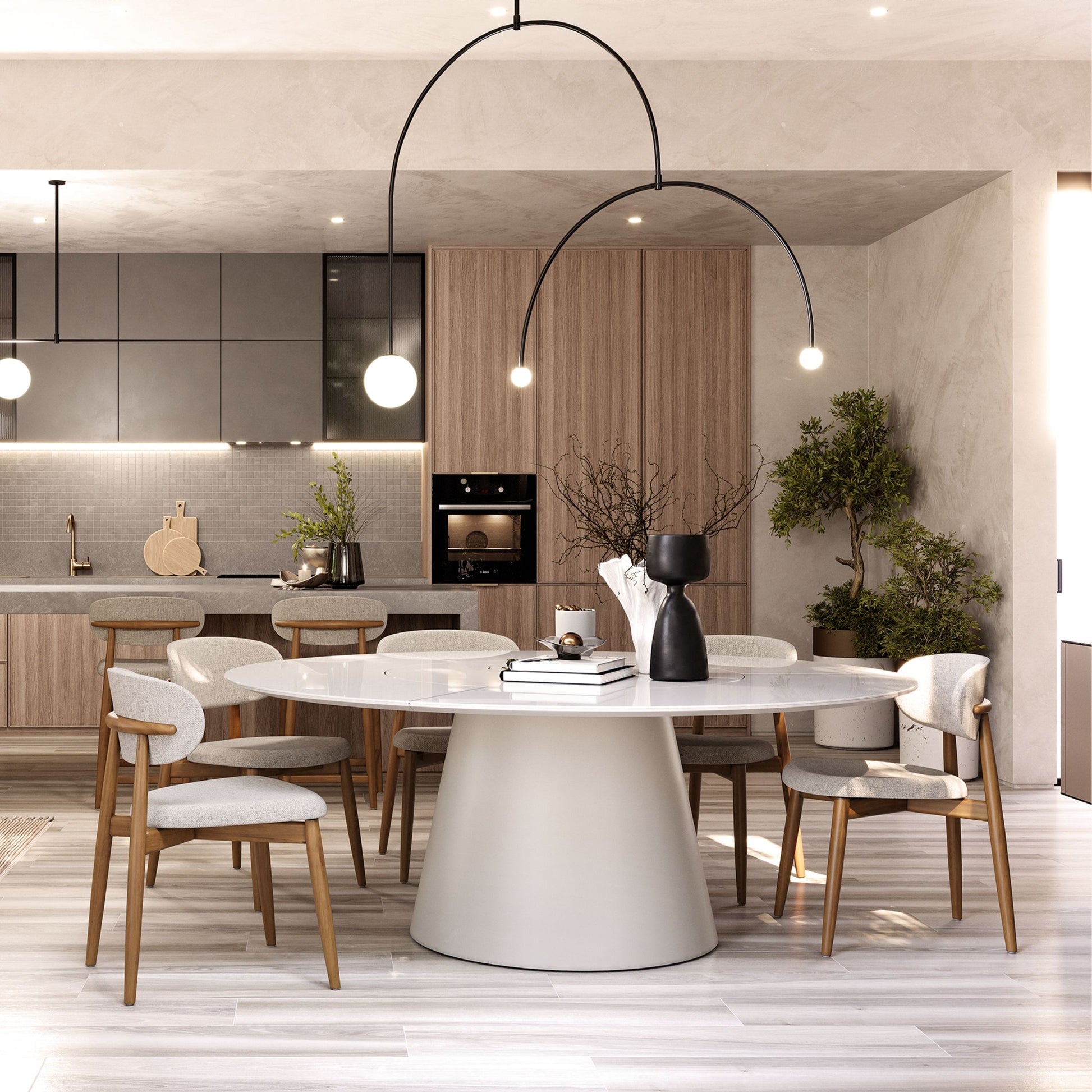 The Prisma Dining Chair combines a modern silhouette with a soft, organic feel. Its curved backrest wraps gently around the seat, offering light support while keeping the profile open and airy. The exposed wood frame adds natural warmth and durability, giving the chair an effortless, timeless appeal.