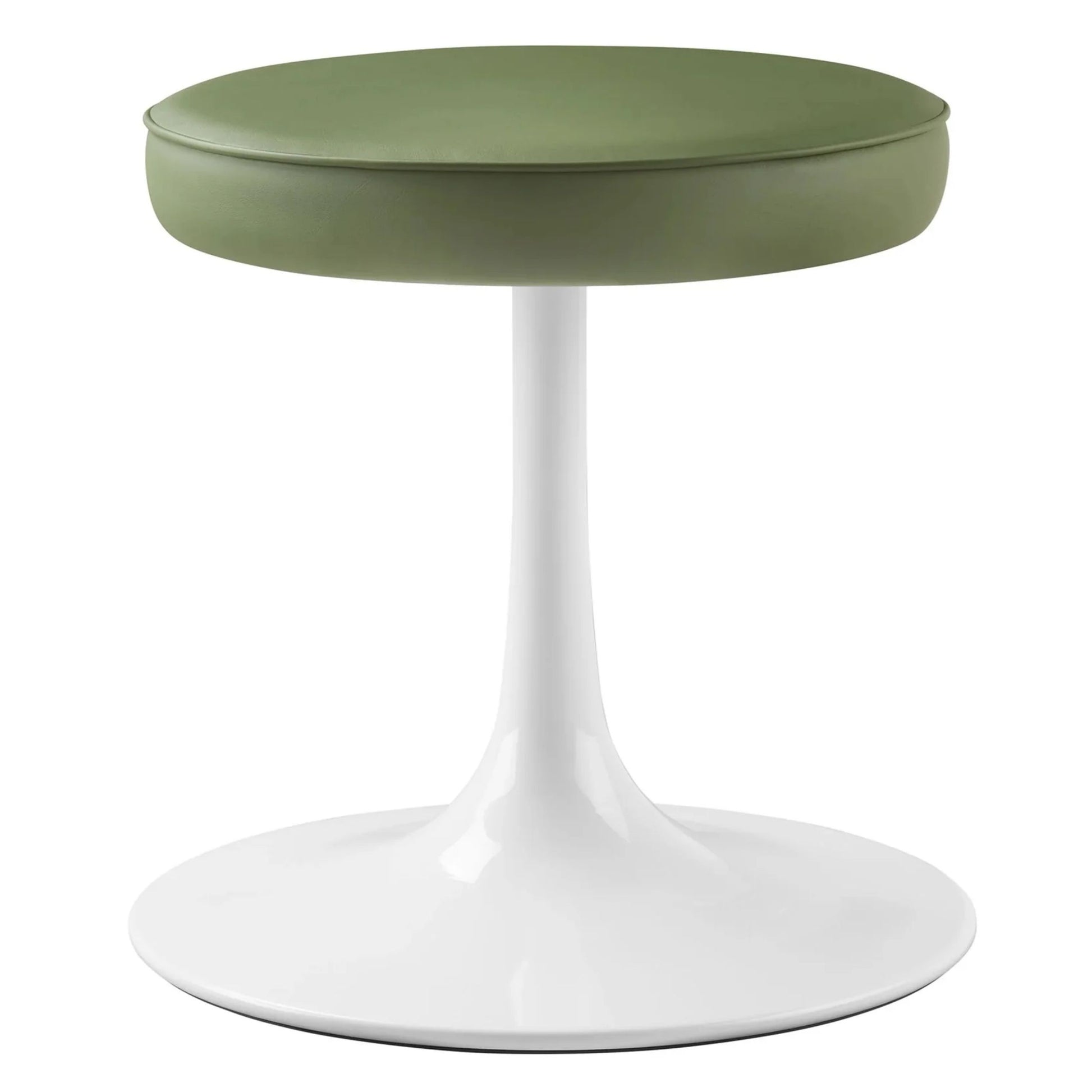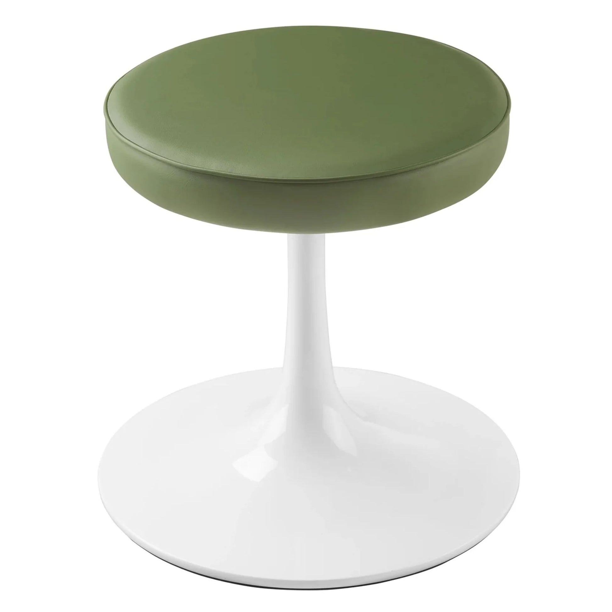 Elevate your space with a sleek and versatile accent. This compact stool features a round, fixed seat upholstered in easy-to-clean PU leather, offering comfort with low-maintenance appeal. The sturdy metal base showcases a glossy finish that nods to mid-century modern style while providing lasting durability. Designed with flexibility in mind, it works effortlessly as a chic vanity stool, a casual side seat, or even a stylish plant stand. A non-marking ring beneath the base helps protect floors, making it as practical as it is polished.