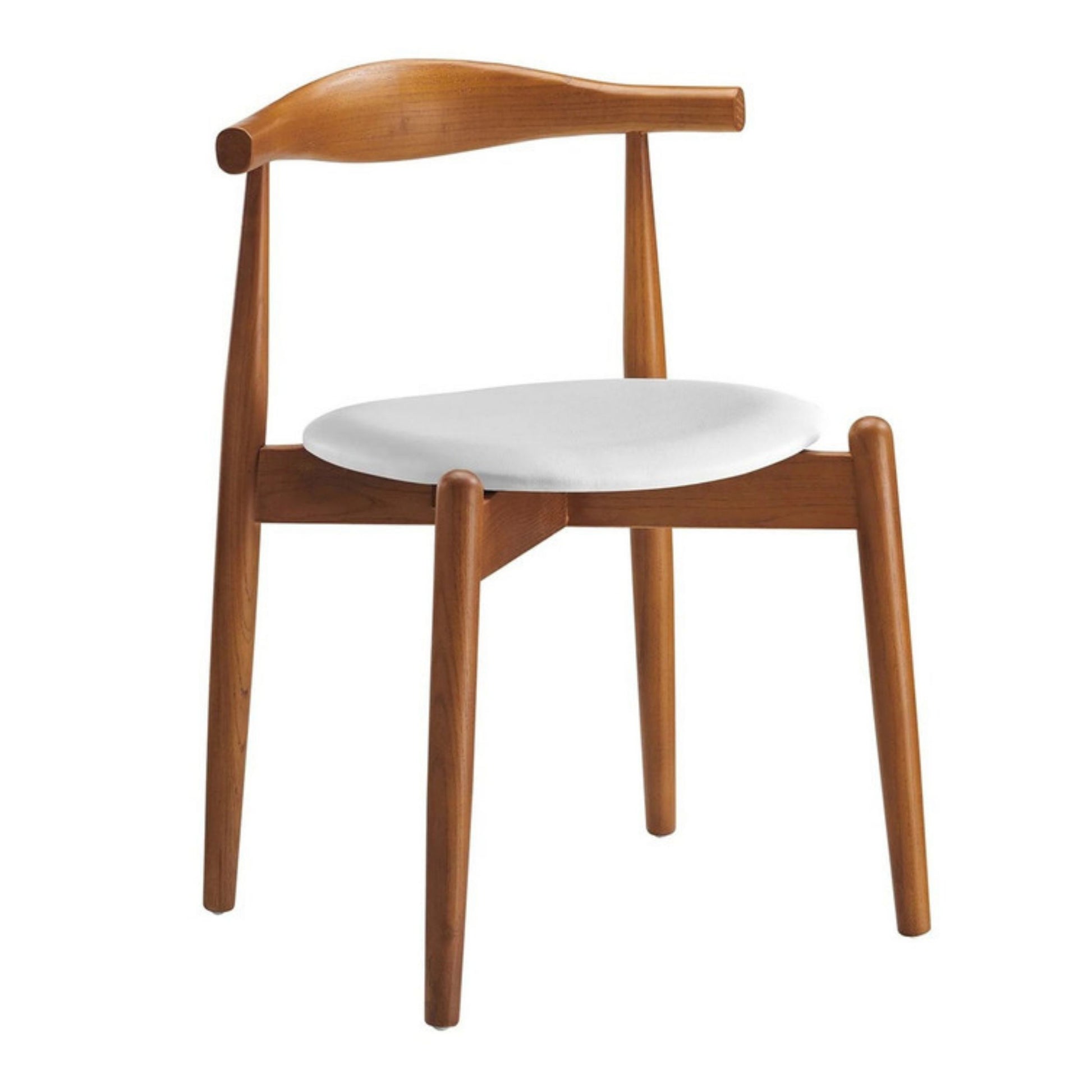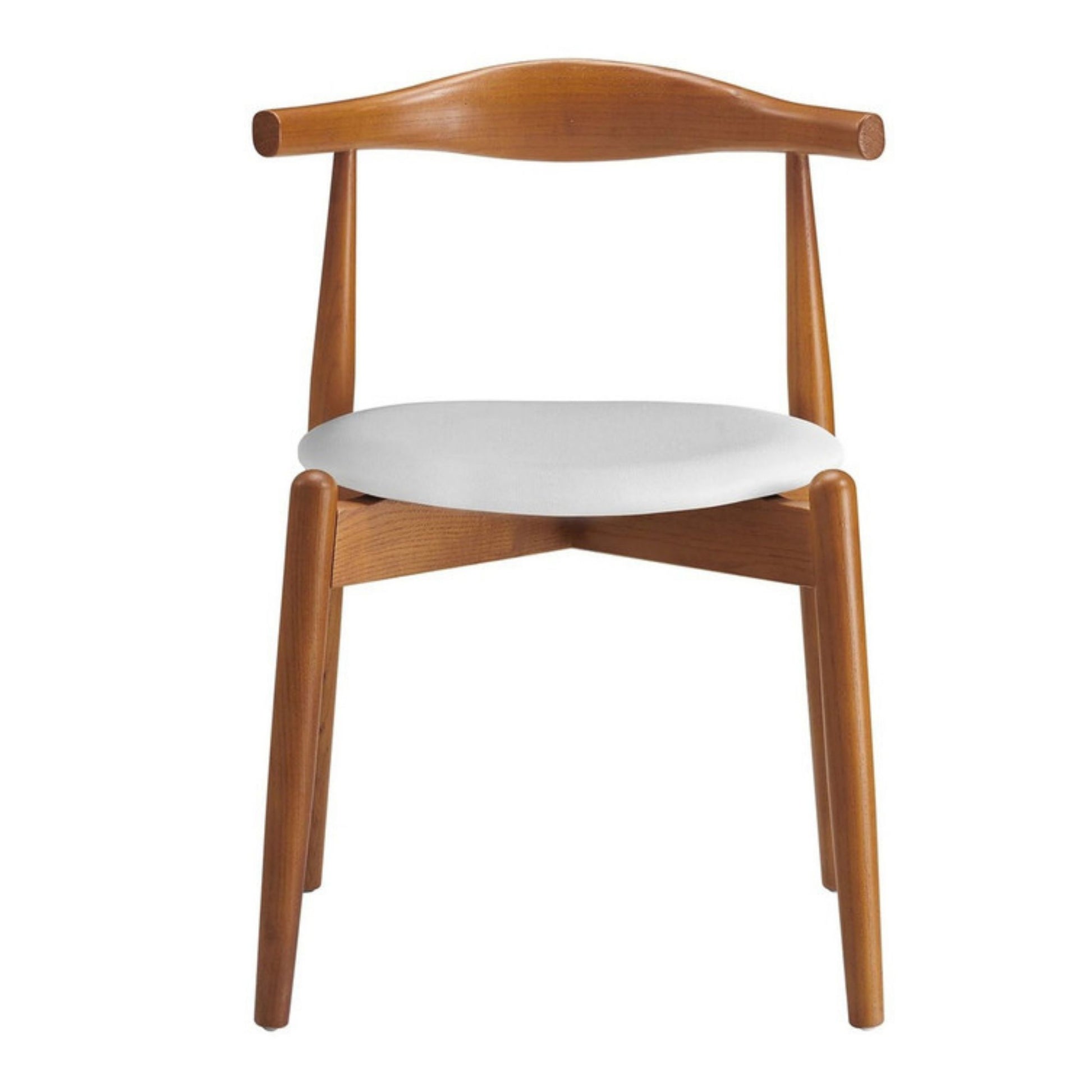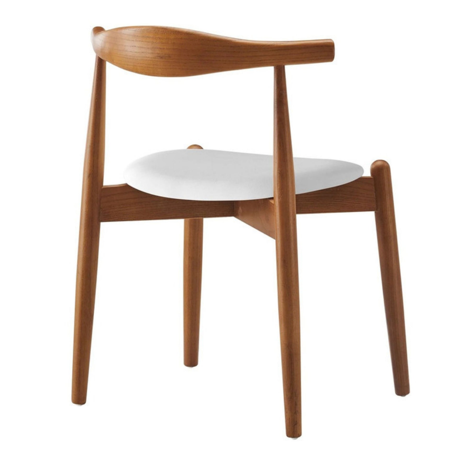 - Elongated wood backrest and tapered legs for a sleek, structured profile