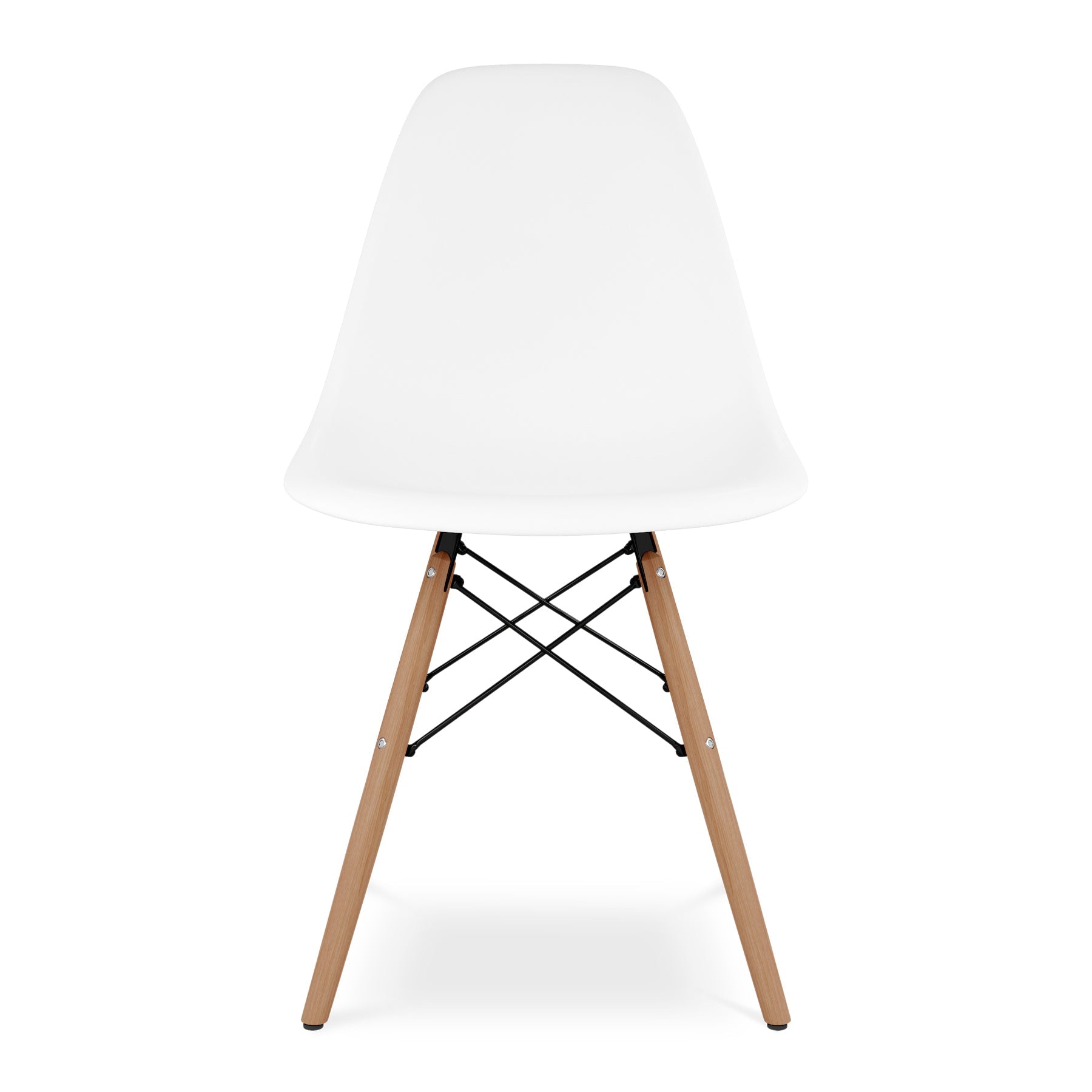 - The Eiffel Chair features a molded ABS plastic seat paired with solid beech wood legs, equipped with non-marking glides for stability and floor protection.