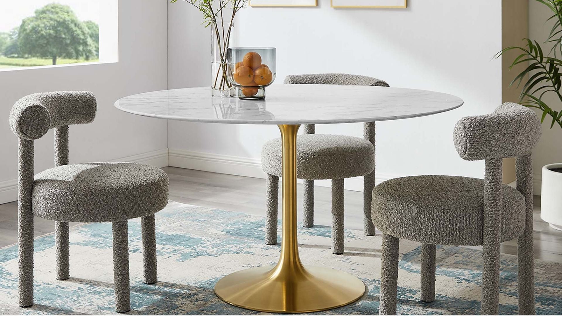 Tulip Marble Dining Table, 54" Round, Gold Base