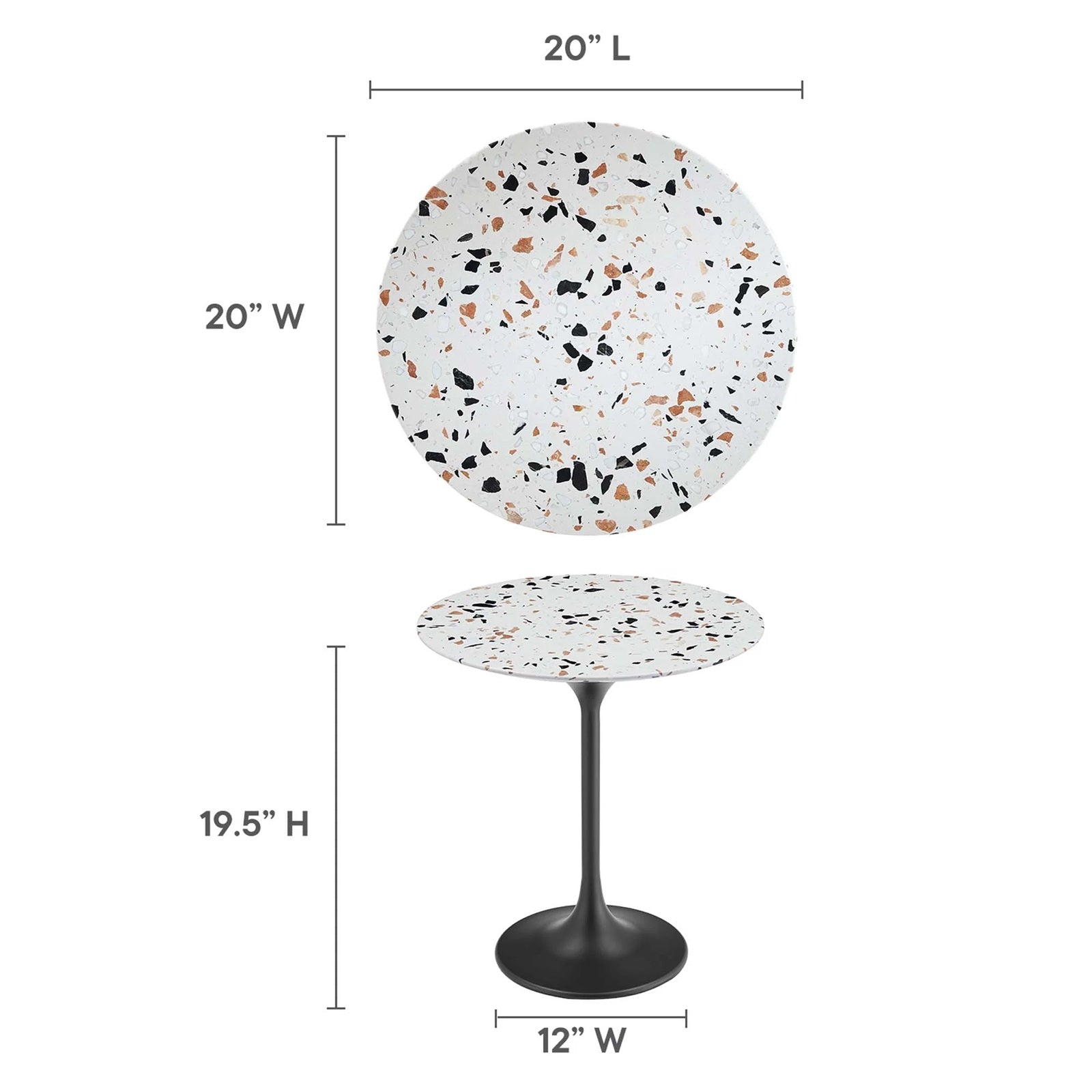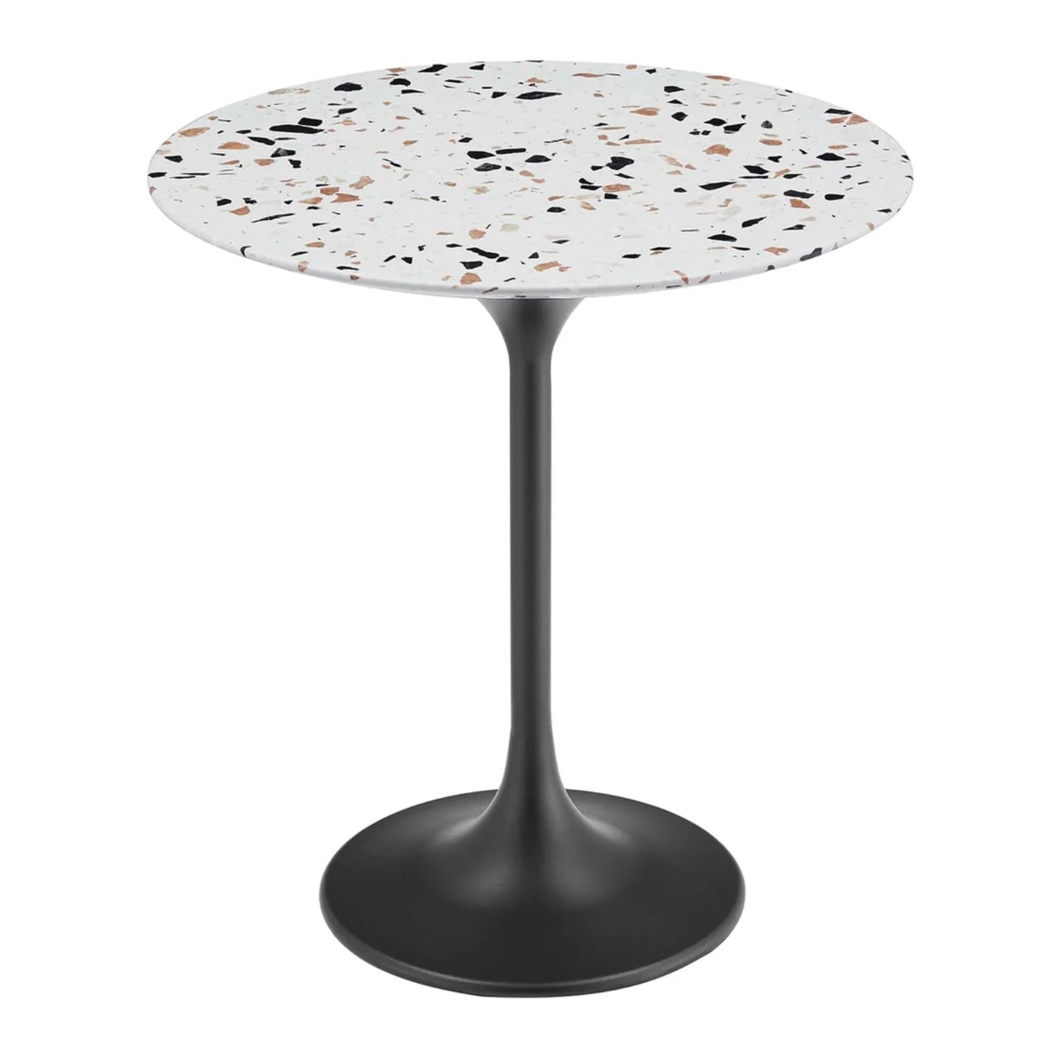 Tulip Marble Side Table - 20" Round, Black Terrazzo